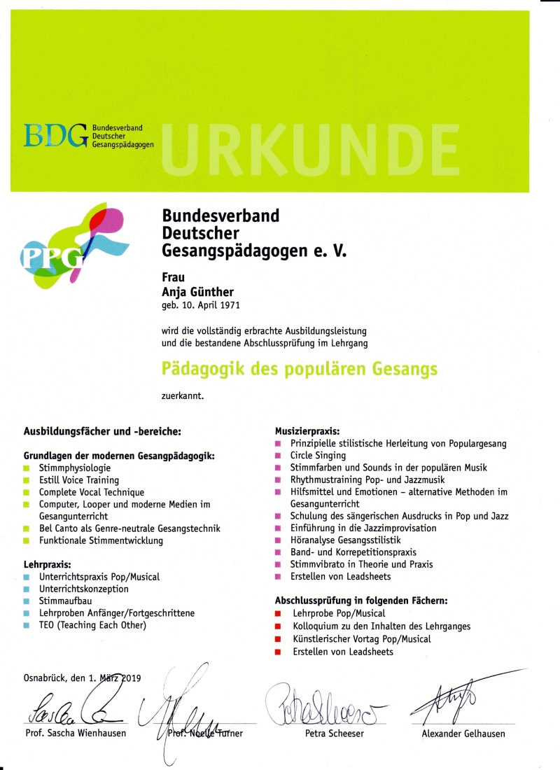 • Gesangsunterricht